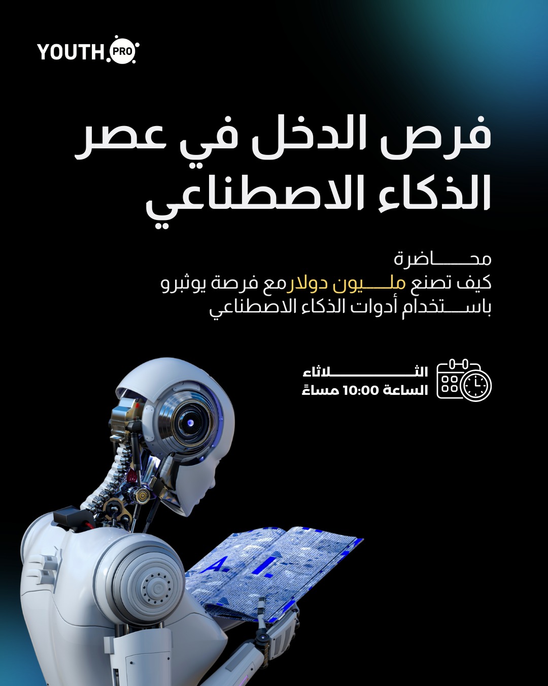 ستتعرّف كيف يُستخدم الذكاء الاصطناعي لبناء دخل حقيقي ضمن فرصة تجمع بين التعلّم، التطبيق، والمسار التجاري الواضح